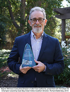 The organization was renamed Idle-Free California Inc. when relocating to California in 2016. Two idle-free schools studies/campaigns were implemented in Sacramento County in the 2017-18 school year, and Wayne was recognized with the prestigious East Bay Clean Cities Clean Air Champion award in 2019. However, Idle-Free California did not achieve the level of success that Idle-Free VT did. Overall, California health and environmental organizations, regional and state agencies and the state legislature took little interest in unnecessary idling despite the low-hanging fruit opportunity to reduce its impact in the state: estimated to be 300 million gallons of fuel consumed resulting in three million tons of CO2 emitted annually by vehicles idling just when parked.