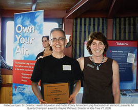 *2016: "In all my years at DEC, I'm hard-pressed to think of any Vermont citizen who has done more to help address an important environmental and public health issue like this one. Unnecessary vehicle idling is one of those problems that simply cannot be solved by Government alone. Citizen action and involvement are absolutely critical, and no one provides a better example of that than you."
