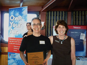 Rebecca Ryan, American Lung Association in Vermont senior director, presents Wayne Michaud with Air Quality Champion award, 2009.