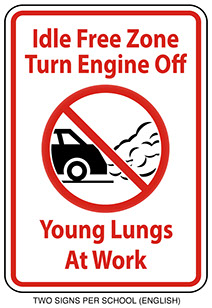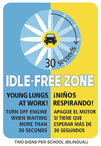 Step 3: FOR SCHOOL ADMINISTRATION - Soon following Step 2, the school officially announces support for the idle-free study/campaign in the school community (preferably on school letterhead) on the school website and/or newsletter. And the school installs our two provided idle-free zone signs (choice of English or bilingual; shipped to school) in strategic areas.