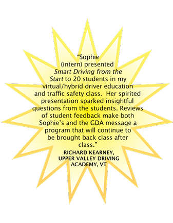 These guest-speaking webinar presentations have been intended for driver education classes (having a required set number of hours of live classroom instruction2). For 2024, thanks to GDA grant awards from the Climate Catalysts Innovation Fund of the Vermont Council on Rural Development, these presentations have been given at no cost in the State of Vermont.